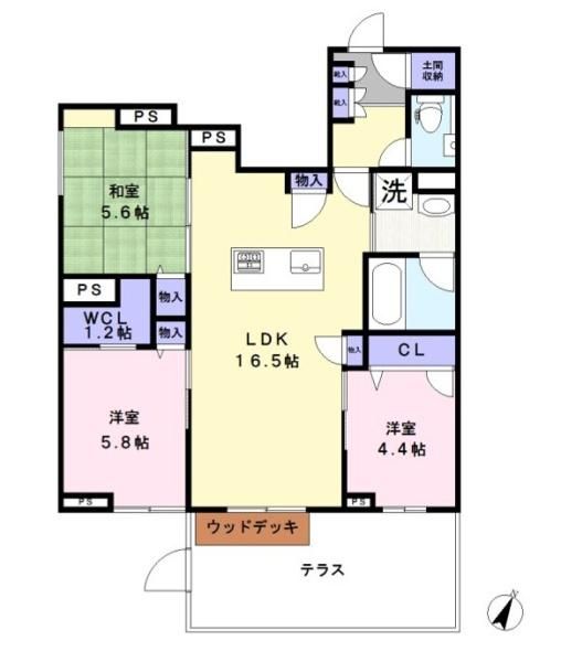 | 築年月 | 新築 | 間取り | 3LDK( LDK16.5畳/洋室5.8畳/和室5.6畳/洋室4.4畳 ) | 専有面積 | 71.32m2 |